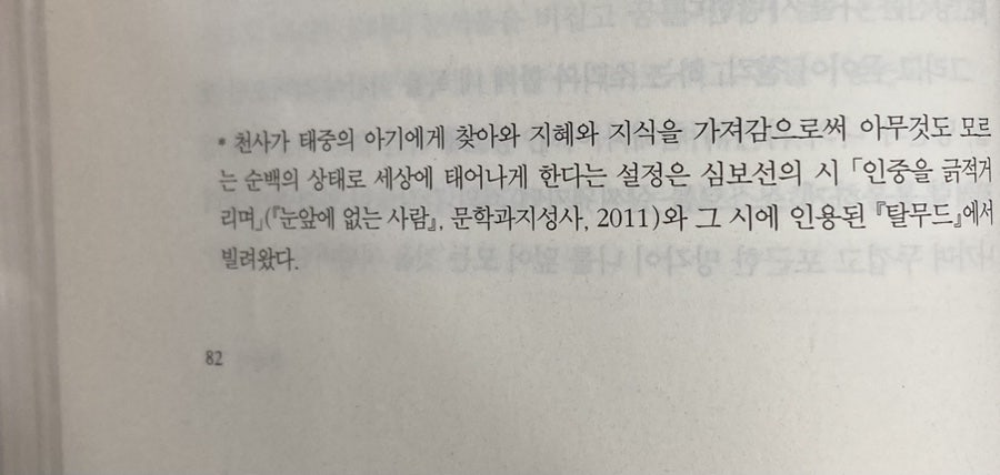 오늘이 그날이 될 수도 있다. 천사가 내려와 나를 침묵하게 하는 날. 내 모든 지혜가 끝나버리고, 모든 걸 잊은 내가 아무것도 아닌 존재로 돌아가고 마는 날. 눈을 뜰 때 그런 생각이 들어 나는 눈을 도로 감는다. 요즘 들어 차갑고 딱딱한 예감에 잠을 깨는 날이 부쩍 늘었다.