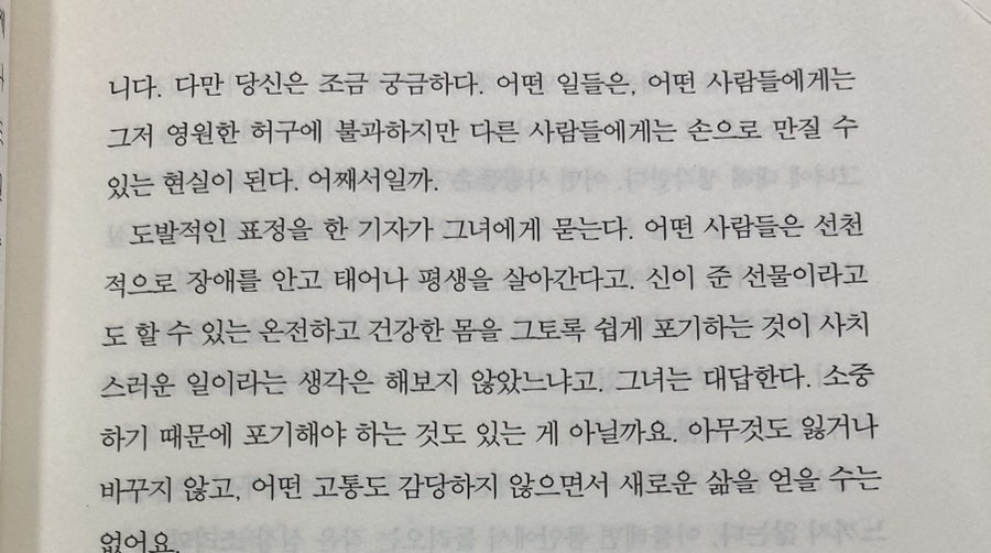 문장이 아름답다고 느껴진 소설이다. 특히 이 부분을 좋아한다. 슬프지만 아름답다. 갖고 싶다고까지 느껴졌다.