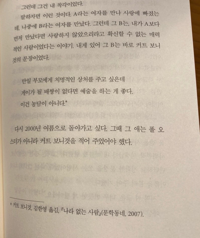 또 책에서 본 이 부분! 나라 없는 사람을 보고 나도 메모를 해두었었다. 가끔은 내가 정말 이 마음이라 예술을 하고 싶은가 생각할 때도 있다. 물론 그 이유는 아니겠지만, 설령 그렇다하더라도 지금은 그러면 안되는데가 아니라 그럼 어때하고 생각한다. 그 선택에서도 내가 존재하겠지 뭐라도 얻었겠지 얻었다기보다 경험하고 느끼겠지 싶다.